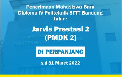 Politeknik STTT Bandung memperpanjang kesempatan bagi adik-adik calon mahasiswa untuk bergabung menjadi mahasiswa dan menjadi salah satu pilar pembanguan industri tekstil indonesia melalui jalur Jarvis Prestasi 2 (PMDK 2) yang akan dibuka sampai dengan tanggal 31 Maret 2022. Pendaftaran Jarvis Prestasi 2 (PMDK 2) dapat diakses melalui : https://bit.ly/DaftarPMDK2STTT Informasi terkait persyaratan dan tata cara […]